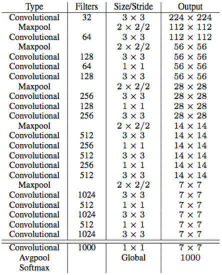 Object detection is an important problem in computer vision. YOLO is a convolutional neural network rated with average accuracy; however, the computation speed is very fast and the computation can be performed on a CPU [36]. As studied by Huang et al. [36], when evaluated on the Pascal VOC 2012 dataset, the accuracy results of R-FCN [37], Faster R-CNN [38], SSD [39], and YOLOv3 [26] are 80.5%, 70.4%, 78.5%, and 78.6%, respectively. The processing time results of R-FCN [37], Faster R-CNN [38], SSD [39], and YOLOv3 [26] are 6 fps, 17 fps, 59 fps, and 91 fps, respectively. Before YOLO was born, there were some CNNs such as R-CNN, Fast R-CNN, and Faster R-CNN using a two-stage detector method that obtained very impressive accuracy results but high computation time. To solve the computation time problem, YOLO uses one-stage detectors for object detection.