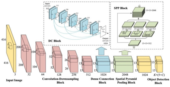 Figure 10. The architecture of YOLO-SPP bypasses the DC Block part [46]. - Dense prediction: using one-stage detectors; Sparse Prediction: using two-stage detectors such as R-CNN.