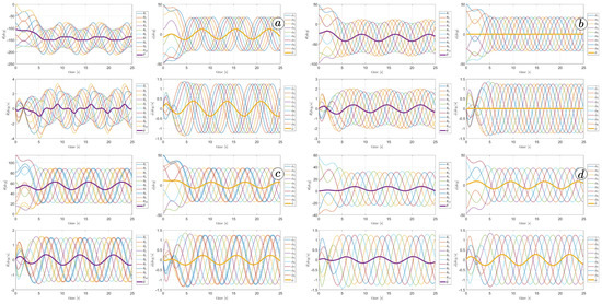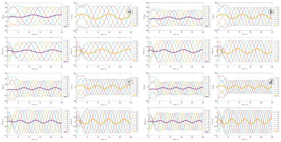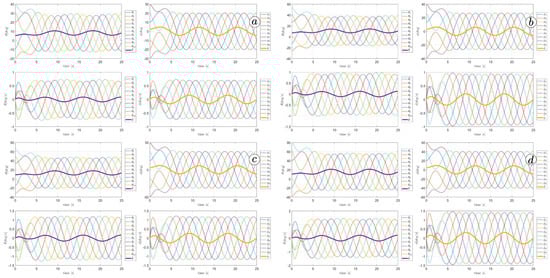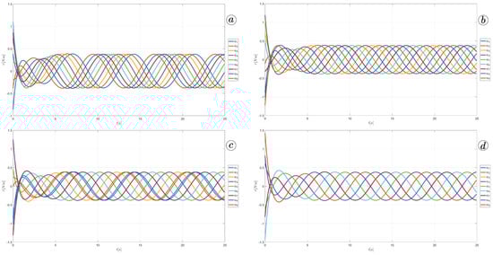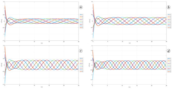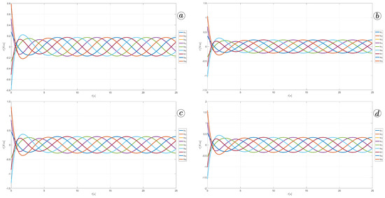 Values of link angles , joint angles , link angles derivatives , and joint angles derivatives for (a), (b), (c), and (d).