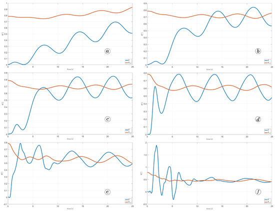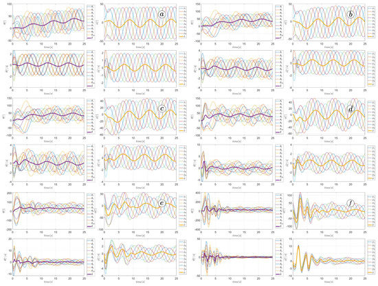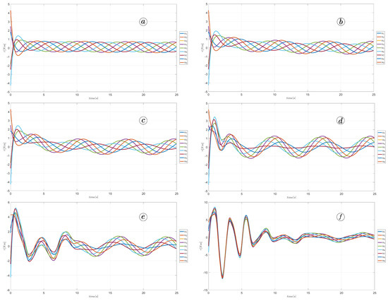 Values of link angles , joint angles , link angles derivatives , joint angles derivatives for (a), (b), (c), (d), (e), and (f).