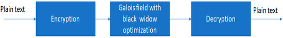 Both the act of keeping information secret and the research on how to achieve it are included in the broad category of cryptography. When people refer to “information security,” they are referring to the study and use of methods that make data transfers harder to intercept. When we talk about “information security,” this is what we have in mind. Using private keys to encrypt and decode messages is a part of this procedure. Because of its vital role in modern information theory, computer security, and engineering, cryptography is now considered to be a branch of both mathematics and computer science. Because of its mathematical properties, the Galois field may be used to encrypt and decode information, making it relevant to the subject of cryptography. The ability to encrypt and decode information is one such use. In this case, the data may be encoded as a Galois vector, and the scrambling process could include the application of mathematical operations that involve an inverse. While this method is unsafe when used on its own, it forms the foundation for secure symmetric algorithms like AES and DES when combined with other bit shuffling methods. A two-by-two encryption matrix is used to protect the two data streams, each of which contains 25 bits of binary information which is included in the proposed work. Each cell in the matrix represents an irreducible polynomial of degree 6. Fine-tuning the values of the bits that make up each of the two 25-bit binary data streams using the Discrete Cosine Transform (DCT) with the Advanced Encryption Standard (AES) Method yields two polynomials of degree 6. Optimization is carried out using the Black Widow Optimization technique is used to tune the key generation in the cryptographic processing. By doing so, we can produce two polynomials of the same degree, which was our original aim. Users may also use cryptography to look for signs of tampering, such as whether a hacker obtained unauthorized access to a patient’s medical records and made any changes to them. Cryptography also allows people to look for signs of tampering with data. Indeed, this is another use of cryptography. It also has the added value of allowing users to check for indications of data manipulation. Users may also positively identify faraway people and objects, which is especially useful for verifying a document’s authenticity since it lessens the possibility that it was fabricated. The proposed work achieves higher accuracy of 97.24%, higher throughput of 93.47%, and a minimum decryption time of 0.0047 s.