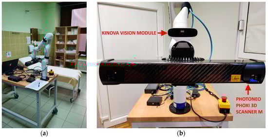 The hardware configuration (Figure 2) of the acquisition system consists mainly of a Kinova Gen3 7-DoF robot arm and a Photoneo PhoXi M 3D scanner. The Kinova Gen3 robot arm has an RGB-D camera based on Intel RealSense technology embedded in its tool link in the form of the Kinova vision module. The Photoneo PhoXi 3D scanner is connected to the Kinova Gen3 tool link via a custom 3D printed frame. The Kinova RGB camera was manually calibrated to the PhoXi 3D scanner, while the PhoXi 3D scanner was also manually calibrated to the Kinova Gen3 tool link, which enabled transformations between PhoXi and robot base reference frames.