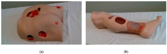 Medical models used in this research: (a) Seymour II wound care model; (b) Vinnie venous insufficiency leg model.