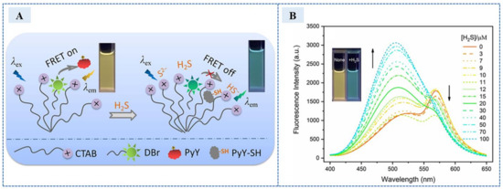 Near-infrared fluorescent dyes can reduce the interference of external fluorescence to a certain extent, but they have the following disadvantages: First of all, the toxicity of dyes needs to be considered, and the number of available dyes is even smaller. Secondly, some near infrared fluorescent dyes have poor chemical and light stability, such as cyanine dyes. Finally, the solubility of many near-infrared fluorescent dyes such as borodipyrrole dyes is difficult to meet the requirements of practical detection [68]. If we want to use near-infrared fluorescent dyes to detect H2S, more research needs to be conducted on dye synthesis.