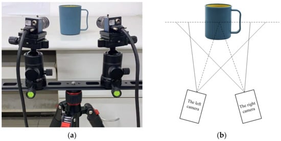Experimental setup: (a) binocular system; (b) measurement diagram.
