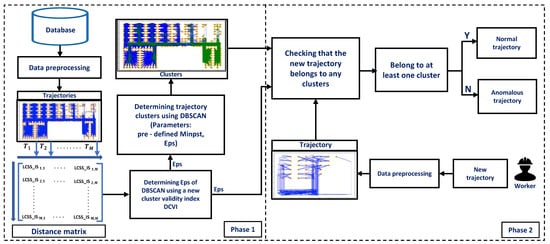 This section introduces an overview of the two-phase framework for detecting human trajectory anomalies. This section also discusses how to cluster trajectories using DBSCAN and detect anomalous trajectories.