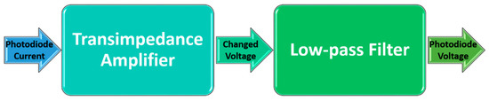Block diagram of the electronic stages designed for the photodiodes of the sensor pads.