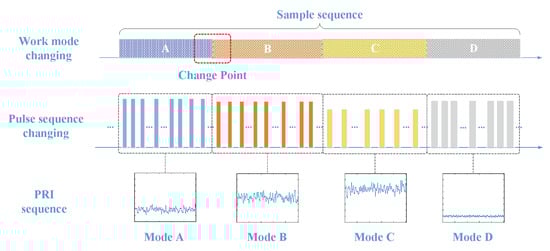 In fine-grained work mode, MFRs can emit specified pulse sequences with different PRI modulation types and corresponding modulation parameters. The CPD task’s objective is to accurately identify these work mode change boundaries in the PRI sequence.