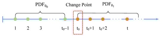 In this paper, the change point is defined as the first point of the distribution, denoted by the time index in Figure 3.