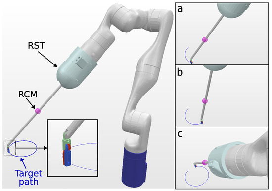 - Sandoval, J.; Poisson, G.; Vieyres, P. A new kinematic formulation of the RCM constraint for redundant torque-controlled robots. In Proceedings of the 2017 IEEE/RSJ International Conference on Intelligent Robots and Systems (IROS), Vancouver, BC, Canada, 24–28 September 2017; pp. 4576–4581. [Google Scholar] [CrossRef]