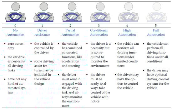 - Society of Automotive Engineers. 2019. Available online: https://www.sae.org/news/2019/01/sae-updates-j3016-automated-driving-graphic (accessed on 7 January 2023).