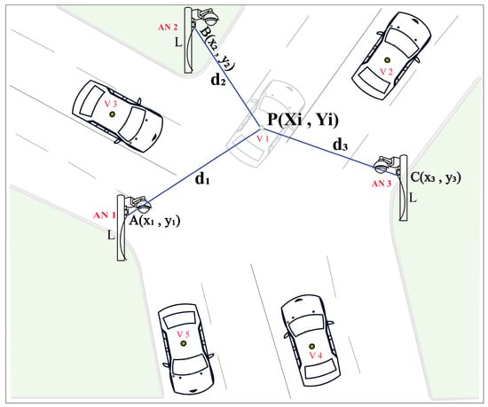 Proposed localization model of AV’s positioning by multi-anchor nodes traffic surveillance system.