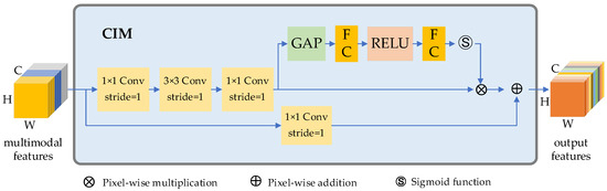 Since each of these maps contains both valuable and non-valuable information, we apply the channel interaction method to reweight each channel of the connected features accordingly. To accomplish this, we use an SE-block [40] to improve the sensitivity of valuable channels and suppress useless ones. The structure of the CIM unit is shown in Figure 9.