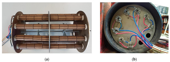 (a) Heating system assembly and (b) electrical wires for the resistances.
