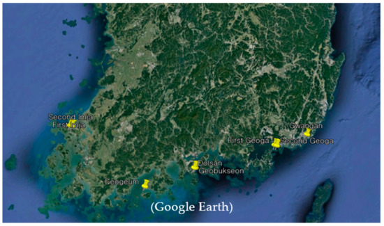 South Korea has a total of 76 cable bridges. The Ministry of Land, Infrastructure, and Transport plans to apply LCMIs to 56 cable bridges between 2019 and 2030. The proposed LCMI was installed and operated on eight cable bridges, as shown in Table 11 and Figure 16.