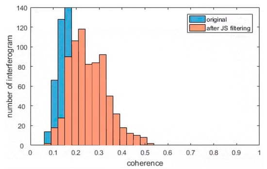 The average coherence comparison of the interferograms before and after JS-InSAR processing.