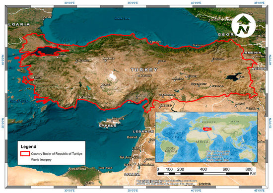 Geographic location and borders of the Republic of Türkiye (study area) (ESRI World Imagery Basemap).