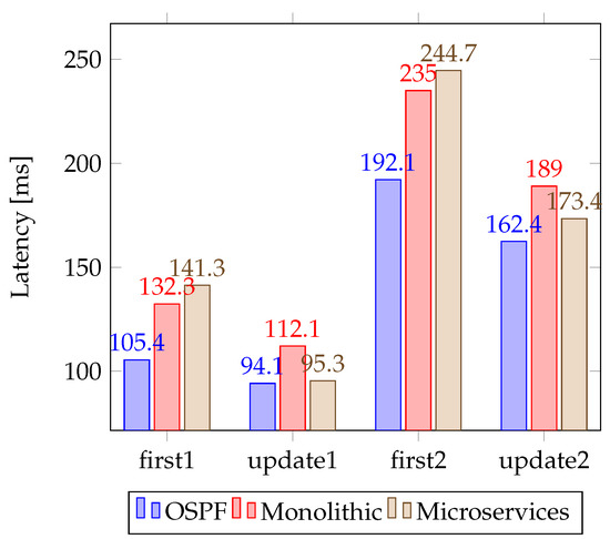 - Hölscher, A.; Asplund, M.; Boeira, F. Evaluation of an SDN-based Microservice Architecture. In Proceedings of the 2022 IEEE 8th International Conference on Network Softwarization (NetSoft), Milan, Italy, 27 June–1 July 2022; pp. 151–156. [Google Scholar]