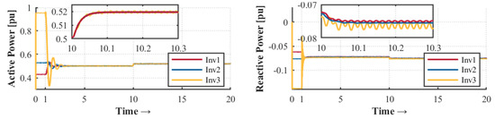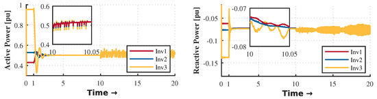 Different lengths of transmission lines make the VSI output impedance different, causing unequal power sharing in droop control. Virtual impedance is an essential concept [64] to fix the output impedance value and decouple the control of active and reactive powers. The virtual impedance can help to keep the voltage within certain limits and is used for applications such as harmonic voltage compensation and improved stability. Refs. [37,65] show the implementation of virtual impedance. However, it is out of the scope of this research.