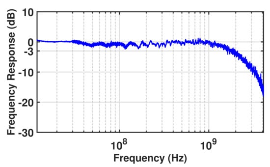 Figure 11 illustrates the normalized frequency response of the MD-APD measured at the operating voltage of 24 V (R = 9.7 A/W and M = 36) and an optical power of 200 nW ( = 675 nm) using a vector network analyzer (Rohde&Schwarz ZNB8).
