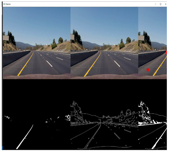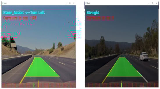 In the aspect of safety, this work uses computer vision-based lane change detection and proximity alert mechanisms to indicate the change in lane and to avoid collision [,]. There are already a few implementations available in both mechanisms but using computer vision yields more precision and sensitive alert indications. In this proposed work, the advancement of ADAS technologies is the connected car in which the vehicle intercommunication vehicle-to-vehicle (V2V), and cloud connection with vehicle-to-infrastructure (V2I) are completed []. Additionally, a drivability mode improvisation is proposed where we will continuously monitor critical parameters influencing the drive modes of an automotive, and based on this monitoring, the level of smooth drive can be indicated to the ADAS [,]. In addition, several custom modes of driving can be formulated for individual vehicles based on their nature of drive which is observed from the monitored parameters. The novelty of this custom driving mode formulation is that we could design the mode such that the ADAS can operate accordingly for different terrain regions and different traffic, and road conditions in an efficient way by adjusting the cruise, throttle, and operating factors as formulated []. By fusing this data with the vehicle’s sensor inputs it will become possible to create much more details of the surrounding area with real-time AI-based lane detection which can provide more accurate alerts and corrective actions, to avoid collisions [].