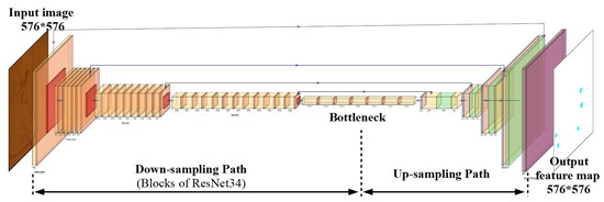 The architecture of the Residual U-Net model is shown in Figure 5. ResNet34 pre-trained on the ImageNet was used as the encoder to capture deep semantic features (down-sampling path). The decoder consisted of an augmented attention module and a decoder block (up-sampling path).