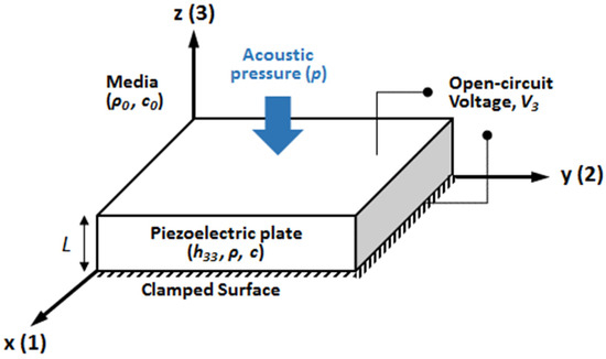 Figure 1 shows a piezoelectric plate of a thickness L with a clamped bottom surface. The plate is poled in the thickness direction 3. The constitutive equations of interest for the piezoelectric plate are as follows [30]: