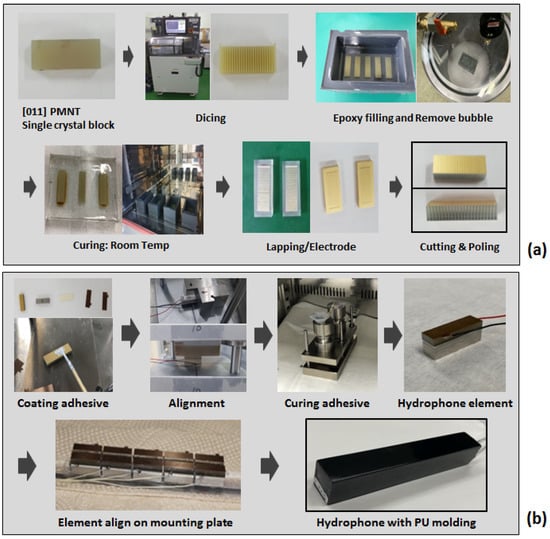 Fabrication process: (a) The 2-2 single crystal composite. (b) The hydrophone.