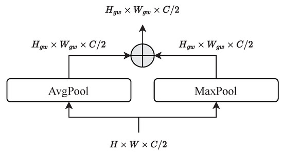 To create windows with a spatially limited receptive field for fine-grained features, we follow the window partitioning strategy of Swin Transformer [12]. This allows us to apply multihead self-attention to the local feature maps (see Figure 3c). For global self-attention, we first perform the patch-sampling operation illustrated in Figure 4. Patch-sampling performs adaptive max- and average-pooling to the global features and reduces the spatial resolution to , where refers to the global window-size. Due to the combination of average- and max-pooling, which is inspired by attention blocks such as CBAM [35], we are able to extract a rich feature description of each image region. In effect, a single window with a global receptive field is created, to which multihead self-attention is subsequently applied. The self-attention for local and global self-attention are computed as