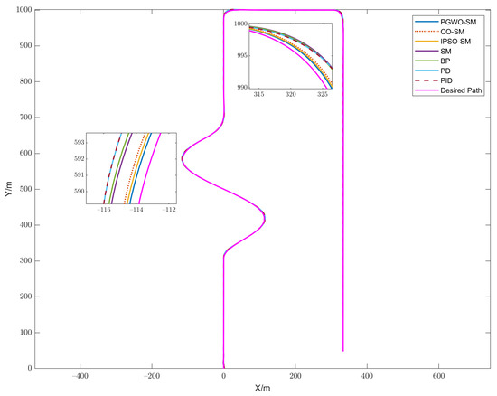 However, it is noteworthy that the fundamental mission of autonomous vehicles is to ensure passengers’ safety [43]. Therefore, the controller should be adaptable. Even in dangerous scenarios (driving at high speed on complex trajectories), the controller can autonomously tune its gain and minimize errors. Current studies mainly focus on path following and do not meet the adaptive requirements of autonomous vehicles. Additionally, the predefined curves in previous studies are simple and differ from practical traffic scenarios.