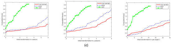 | Experiment | Axis (m) | Degree (°) | LiDAR with IMU | GICP | ICP | NDT | ||||