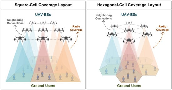 - Huang, H.; Savkin, A.V. Deployment of Heterogeneous UAV Base Stations for Optimal Quality of Coverage. IEEE Internet Things J. 2022, 9, 16429–16437. [Google Scholar] [CrossRef]