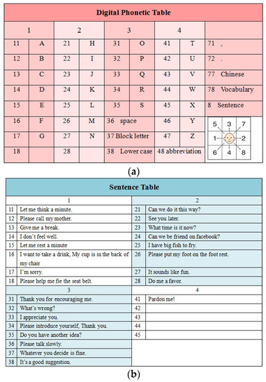 The numeric DT-MHIS phonetic system. (a) numeric English phonemicized table and (b) frequentation-used sentences.