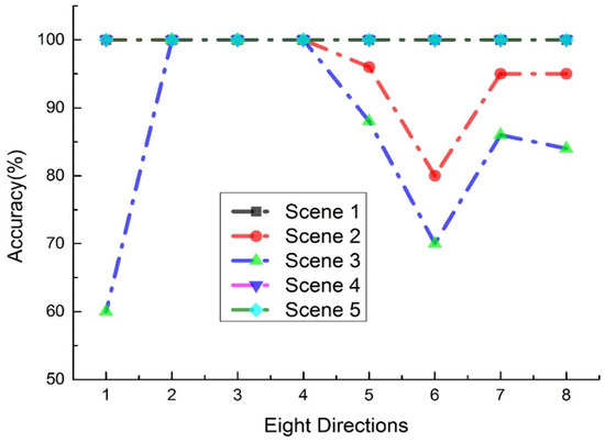 The recognition accuracy of the eight directions in the different backgrounds.