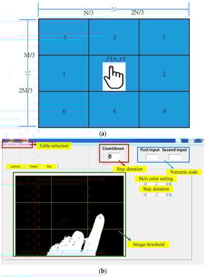 The numeric DT-HMIS using finger gesture recognition (a) eight region (b) screen of the program.