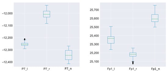In Figure 7, there is a comparison of the signals for two subjects for the same commands from the same sensors. As can be seen from the graphs, for the two participants in the experiment, there was a clear separation for each type of signal.