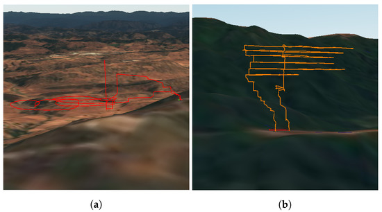 (a) 2D GPS data and (b) 3D GPS data for UAV data collection during a prescribed burn at Pilot Hill.