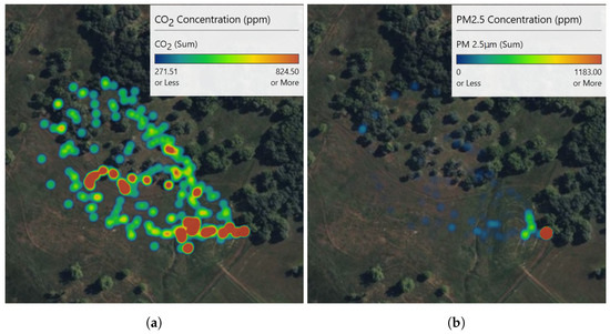 2D Heat Maps for (a) CO and (b) PM2.5 from the Pilot Hill Prescribed Fire Experiment.