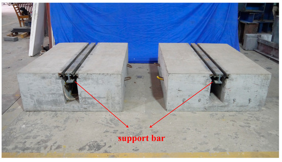 In bridges, the concrete in the anchorage zone on both sides of the MBEJ connects the deck slab and the bottom of the MBEJ, and the deck slabs mostly overhang. However, it is the side girders on both sides of the MBEJ that are most restricted by the concrete in the anchorage zone and will not restrict the support bar, and the concrete at the bottom of the specimen will not restrict the support bar. Thus, the changes in boundary conditions at the bottom and on both sides of the MBEJ do not affect the target (support bar) identified for this test. Therefore, only enough concrete needs to be poured to confine the edge beams of the MBEJ, and no excessively long deck slabs need to be cast.
