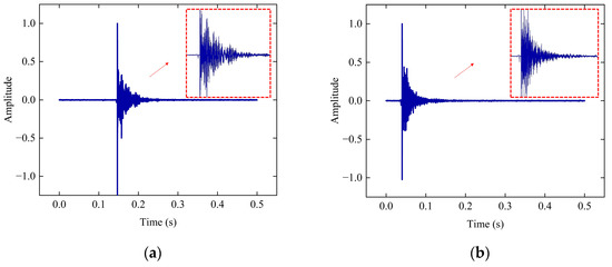 Time domain: (a) time domain of the damaged support bar; (b) time domain of the healthy support bar.