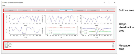 The developed software can, in future versions, be adapted in a relatively simple and inexpensive way, showing high potential to become a truly useful tool for advanced mold monitoring algorithms development. A change that can be implemented is the real-time comparison between measured values and an acceptable or ideal working value range. This would be coupled with the development and implementation of an algorithm with an output that allows identifying data patterns close to or over the operational limits, in-process. Thus, the software would be able to perform the early detection of the need for maintenance, as well as suggesting or even autonomously implementing parameter alterations for fault compensation or require process halting. Another adaptation that can improve the system, making it more practical and physically flexible, is enabling wireless communication between the microcontrollers and computer. Monitoring online, mobile, or otherwise, devices, would be a further step in that direction.