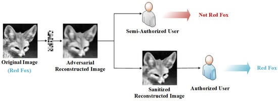 Suppose is the original dataset with N images, where represents the original image with the serial number of i, and represents the classification label corresponding to . The is sampled to obtain a measurement vector , then receivers can reconstruct the approximate image of the original image with . Similarly, the reconstructed image dataset can be expressed as . In most cases, we hope the reconstructed image to be visually similar to as much as possible, pursuing higher visual quality. However, images with high visual quality often bring privacy leakage problems. For example, when =, these reconstructed images can be analyzed by unauthorized models, or a large number of them can be collected by illegal users for model training.
