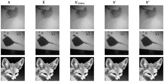 Over the past decades, many classic traditional CS reconstruction algorithms have been proposed [2,3,4], such as the orthogonal matching pursuit algorithm (OMP) [2] and the gradient projection for sparse reconstruction algorithm (GPSR) [3]. However, such traditional reconstruction algorithms often have high computational costs, and when the sampling rate is low, it is usually difficult to obtain a reconstructed image with good quality.