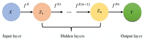 The DeepGP employs the Gaussian process and deep learning as a hierarchical network to address the nonlinear relationships between the nodes in the hierarchy [24]. Layering numerous single-layer Gaussian processes on top of one another results in a deep network structure. These layers are then linked together. The DeepGP model’s organizational structure is depicted in Figure 4.