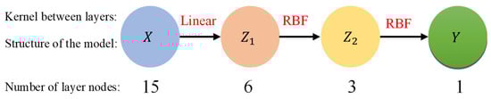 The hyperparameters of the DeepGP model consist of the number of hidden layers, the number of nodes within each layer, and the type of kernel between each layer. These hyperparameters are critical for the model’s accuracy and effectiveness. Theoretically, the more hidden layers there are in a deep network, the smaller the model’s regression error will be. However, if there are too many layers, the model’s training time will be excessively long, it will be overly intricate, and it will have overfitting issues. The literature [26] suggests that DeepGP models with two or three hidden layers perform well in terms of prediction. In this work, the hidden layers of the model are chosen as two layers to maintain the prediction speed while reducing the model complexity.