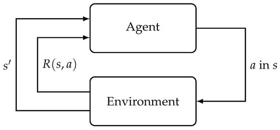 Let S and A denote the set of all states and actions available to an agent. Let R: denote a reward function that gives the agent a virtual reward for taking action in state . Let T denote the transition function. In a deterministic world, T: , i.e., the actions of the agent is deterministic, whereas in a stochastic world, these actions might be probabilistic—T: . We can use a Markov Decision Process (MDP) to model such a stochastic environment, which is defined as a tuple . The objective is to find a (optimal) policy : that maximizes the expected cumulative reward. To give higher preference to the immediate rewards than to the future ones, we discount the future reward values. The sum of the discounted rewards is called value. Therefore, to solve an MDP, we will maximize the expected value (V) over all possible sequences of states. Thus, the expected utility in a state can be recursively defined as follows: