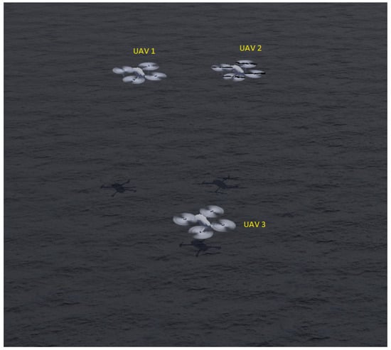 An illustration of multi-robot pursuit–evasion scenario where UAVs 1 and 2 have captured and “grounded” UAV 3, which is an evader robot.