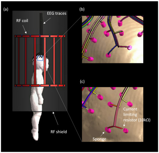 - Noth, U.; Laufs, H.; Stoermer, R.; Deichmann, R. Simultaneous electroencephalography-functional MRI at 3 T: An analysis of safety risks imposed by performing anatomical reference scans with the EEG equipment in place. J. Magn. Reson. Imaging 2012, 35, 561–571. [Google Scholar] [CrossRef]