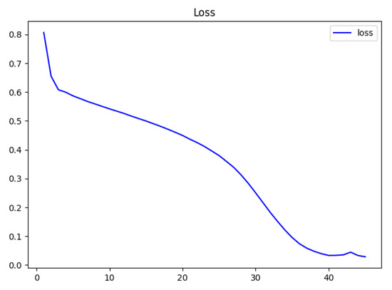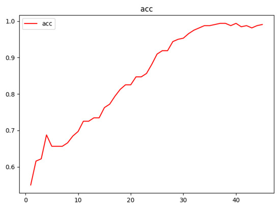The loss function is an operation function used to calculate the difference between the model’s predicted value, f(x), and the actual value, Y, during the model’s training phase. The smaller the loss function is, the better the robustness of the model is. The predicted value is output through forward propagation after each batch of training data has been fed into the model, and the loss function then works out the difference between the predicted value and the true value, which is the loss value. In order to achieve the goal of learning, the model updates each and every parameter by using back propagation after obtaining the loss value. This reduces the differences between the real value and the predicted value so that the predicted value it produces can be close to the real value. According to the loss function curve and acc accuracy curve in Figure 8 and Figure 9, the model developed performs well by using the dataset. The issue of over-fitting is resolved after parameter selection, and the loss curve is smooth and convergent. The acc curve showed a good learning state for the neural network because it increased quickly in the prior epochs. The loss curve and the accuracy curve tend to level off once the accuracy is close to 1, which shows that the model converges.