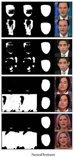 - Thies, J.; Zollhofer, M.; Stamminger, M.; Theobalt, C.; Nießner, M. Face2face: Real-time face capture and reenactment of rgb videos. In Proceedings of the IEEE Conference on Computer Vision and Pattern Recognition, Las Vegas, NV, USA, 26–30 June 2016; pp. 2387–2395. [Google Scholar]